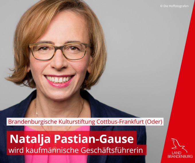 Die Juristin Natalja Pastian-Gause wird neue kaufmännische Geschäftsführerin der Brandenburgischen Kulturstiftung Cottbus-Frankfurt (Oder). Darauf hat sich der Stiftungsrat verständigt. Sie tritt ihre fünfjährige Amtszeit am 01. November 2025 an. Natalja Pastian-Gause übernimmt damit die Nachfolge von Iris Dönicke, die Ende August 2025 ausgeschieden ist.